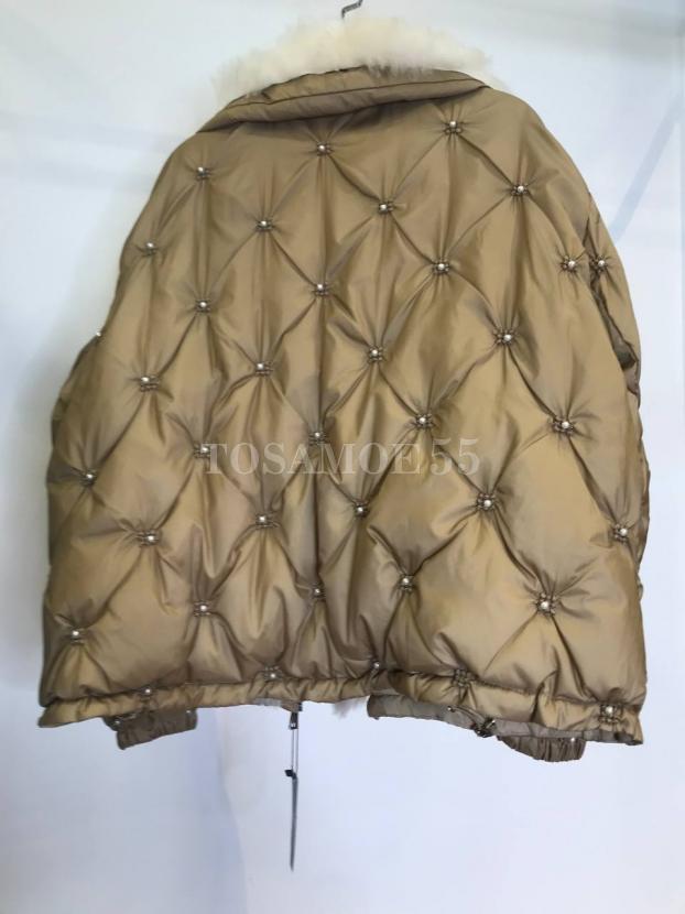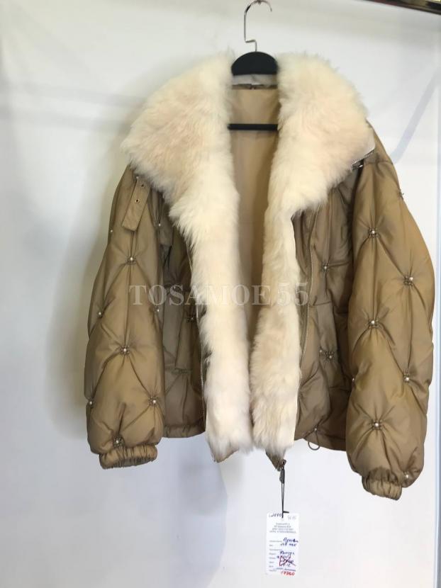 Короткий пуховик с жемчугом отделка эко-мех